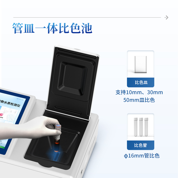 5、支持10mm、30mm、50mm皿比色和φ16mm管比色等比色方式,多元选择,确保测量的准确性;